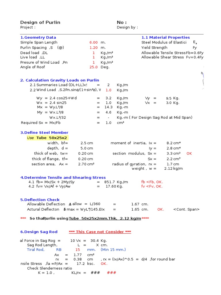 . Lysaght is an Australian manufacturer of quality steel building products including roofing and walling gutters and downpipes purlins fencing structural. Fy 36 ksi Purlins are Z 7 x 25 light gage steel weighing 27 lbft Use WT sections for the chords double angles LL for the verticals and single angels L for the diagonals. As a standard all bypass roof purlins and wall girts will utilize a shop.