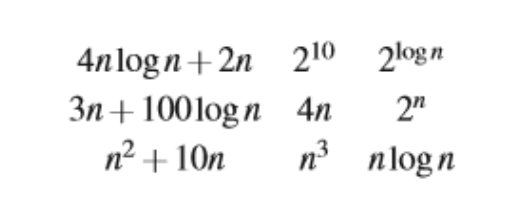 If two or more functions have the same asymptotic growth rate then group them together. Partition your list into equivalence classes such that functions. 4 n log n 2 n 2 10 2 log n.